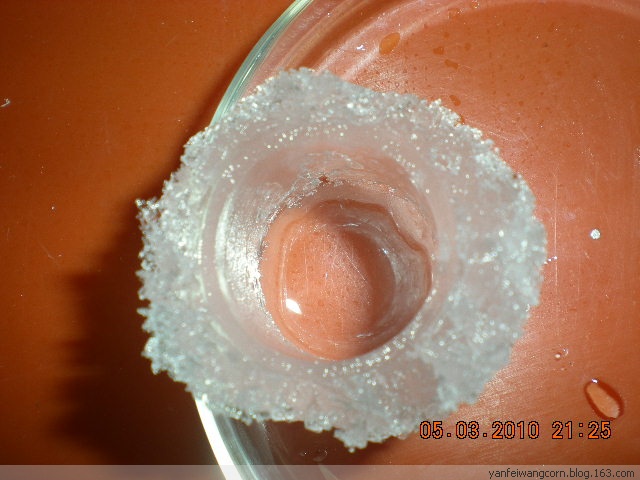 下圖就是cold finger形式的熔融結晶器,及發(fā)汗完的晶體圖片。
